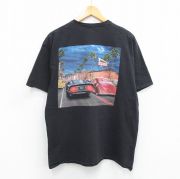 XL★古着 半袖 Tシャツ メンズ レーシングカー 大きいサイズ コットン クルーネック 黒