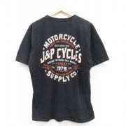 XL★古着 半袖 Tシャツ メンズ J&P モーターサイクル コットン クルーネック 黒