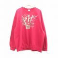 XL★古着 長袖 スウェット メンズ 00年代 00s 刺繍 大きいサイズ クルーネック 赤