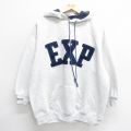XL★古着 EXPRESS 長袖 スウェット パーカー メンズ 00年代 00s EXP 薄グレー 霜降り フード内側サーマル 24aug27 中古 スエット トレーナー トップス