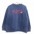 【商品名】 XL★古着 長袖 スウェット メンズ 00年代 00s ボーイスカウト 星条旗 刺繍 クルーネック 紺