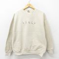 【商品名】 L★古着 長袖 スウェット メンズ 00年代 00s 船 刺繍 鹿の子 クルーネック ベージュ