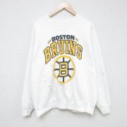 XL★古着 長袖 スウェット メンズ 90年代 90s NHL ボストンブルーインズ クルーネック 白 アイスホッケー
