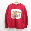 XL★古着 ベーシックエディションズ 長袖 スウェット メンズ 00年代 00s ヒマワリ クルーネック エンジ 24sep09 中古 スエット トレーナー トップス