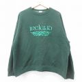 XL★古着 長袖 スウェット メンズ 00年代 00s 刺繍 コットン クルーネック 緑