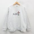 【商品名】 XL★古着 長袖 スウェット メンズ 00年代 00s アラスカ 刺繍 クルーネック 薄グレー 霜降り