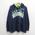 【商品名】 XL★古着 長袖 フルジップ スウェット パーカー メンズ 00年代 00s NFL シアトルシーホークス 大きいサイズ 紺 アメフト スーパーボウル