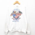 L★古着 リー Lee 長袖 スウェット メンズ 90年代 90s Proud To Be AMERICAN イーグル 星条旗 クルーネック USA製 白