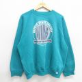 【商品名】 XL★古着 ディスカス 長袖 スウェット メンズ 90年代 90s アルフレッド カレッジ ラグラン クルーネック USA製 青緑系