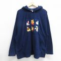 【商品名】 XL★古着 長袖 フリース トップス パーカー メンズ 00年代 00s ディズニー くまのプーさん ティガー 刺繍 大きいサイズ 紺【spe】