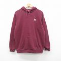 【商品名】 L★古着 アディダス adidas 長袖 スウェット パーカー メンズ ワンポイントロゴ リーフトレフォイル エンジ