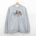 XL★古着 長袖 スウェット メンズ 90年代 90s ディズニー くまのプーさん ティガー クルーネック グレー 霜降り