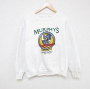 L★古着 ヘルスニット 長袖 スウェット メンズ 80年代 80s エンブレム マーフィーズ クルーネック USA製 白