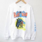 L★古着 長袖 スウェット メンズ DCコミックス バットマン クルーネック 白