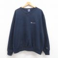 【商品名】 XL★古着 チャンピオン Champion 長袖 スウェット メンズ 90年代 90s ワンポイントロゴ 大きいサイズ クルーネック 紺