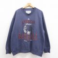 XL★古着 バンヒューセン 長袖 スウェット メンズ 00年代 00s ベースボール 大きいサイズ クルーネック 紺 ネイビー 25jul31 中古 スエット トレーナー トップス
