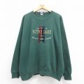 XL★古着 長袖 スウェット メンズ 90年代 90s ノートルダム 刺繍 大きいサイズ ロング丈 クルーネック 濃緑