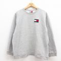 XL★古着 トミーヒルフィガー TOMMY HILFIGER 長袖 ブランド スウェット メンズ 90年代 90s ビッグロゴ クルーネック グレー 霜降り