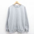 L★古着 ラッセル 長袖 スウェット メンズ 00年代 00s 無地 クルーネック グレー 霜降り