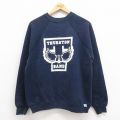 M★古着 長袖 スウェット メンズ 90年代 90s 刺繍 クルーネック USA製 紺