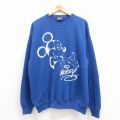 【商品名】 XL★古着 長袖 スウェット メンズ 90年代 90s ディズニー ミッキー クルーネック USA製 青