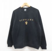 L★古着 スクリーンスターズ 長袖 スウェット メンズ 90年代 90s スコットランド 刺繍 ラグラン クルーネック 黒