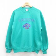 L★古着 長袖 スウェット メンズ 90年代 90s クリスタル クルーネック USA製 青緑