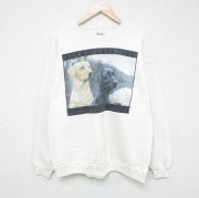 L★古着 長袖 スウェット メンズ 90年代 90s 犬 クルーネック USA製 白