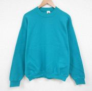 L★古着 フルーツオブザルーム 長袖 スウェット メンズ 90年代 90s 無地 クルーネック USA製 青緑