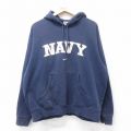 XL★古着 ナイキ NIKE 長袖 スウェット パーカー メンズ ビッグロゴ 刺繍 紺 ネイビー 25sep03 中古 スエット トレーナー トップス