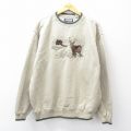L★古着 長袖 スウェット メンズ 00年代 00s シカ 刺繍 クルーネック ベージュ カーキ 25sep04 中古 スエット トレーナー トップス