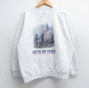 L★古着 長袖 スウェット メンズ 80年代 80s 消防士 クルーネック USA製 薄グレー 霜降り