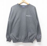L★古着 チャンピオン champion 長袖 スウェット メンズ 00年代 00s ワンポイントロゴ クルーネック 濃グレー 霜降り