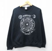 L★古着 長袖 スウェット メンズ 00年代 00s 十二星座 クルーネック 黒