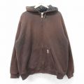 【商品名】 XL★古着 カーハート 長袖 フルジップ スウェット パーカー メンズ 大きいサイズ 茶 内側キルティング【spe】