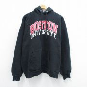 XL★古着 長袖 スウェット パーカー メンズ ボストン 大学 大きいサイズ 黒