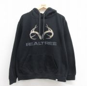 XL★古着 長袖 スウェット パーカー メンズ ビッグロゴ リアルツリー 黒