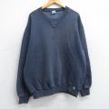 【商品名】 XL★古着 ラッセル 長袖 スウェット メンズ 00年代 00s 無地 ボロ クルーネック 紺【spe】