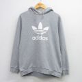 L★古着 アディダス adidas 長袖 スウェット パーカー メンズ ビッグロゴ リーフ トレフォイル グレー 霜降り 26mar23