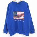 XL★古着 長袖 スウェット メンズ 00年代 00s アメリカ 星条旗 クルーネック 紺