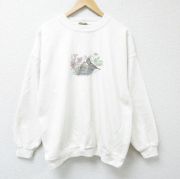 XL★古着 長袖 スウェット メンズ 00年代 00s 鳥 クルーネック 白