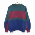 XL★古着 長袖 スウェット メンズ 90年代 90s 無地 マルチカラー ラグラン クルーネック 緑他 グリーン 24apr17 中古 スエット トレーナー トップス