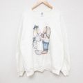 【商品名】 XL★古着 ジャージーズ 長袖 スウェット メンズ 00年代 00s ウサギ 花 大きいサイズ クルーネック USA製 白