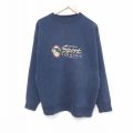 L★古着 長袖 スウェット メンズ 90年代 90s 魚 刺繍 クルーネック 紺 ネイビー 24sep06 中古 スエット トレーナー トップス