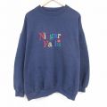 XL★古着 長袖 スウェット メンズ 00年代 00s アルガニー公園 木 刺繍 大きいサイズ クルーネック 紺