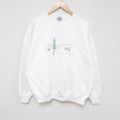 L★古着 長袖 スウェット メンズ 90年代 90s アラスカ 木 刺繍 クルーネック USA製 白 ホワイト 24sep13 中古 スエット トレーナー トップス