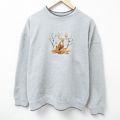 XL★古着 長袖 スウェット メンズ シカ 刺繍 クルーネック 薄グレー 霜降り