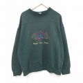 XL★古着 長袖 スウェット メンズ 00年代 00s 刺繍 コットン クルーネック 緑