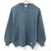 L★古着 ラッセル 長袖 スウェット メンズ 90年代 90s 無地 クルーネック USA製 濃緑