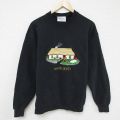L★古着 長袖 スウェット メンズ 90年代 90s プラネットハリウッド 刺繍 クルーネック USA製 黒